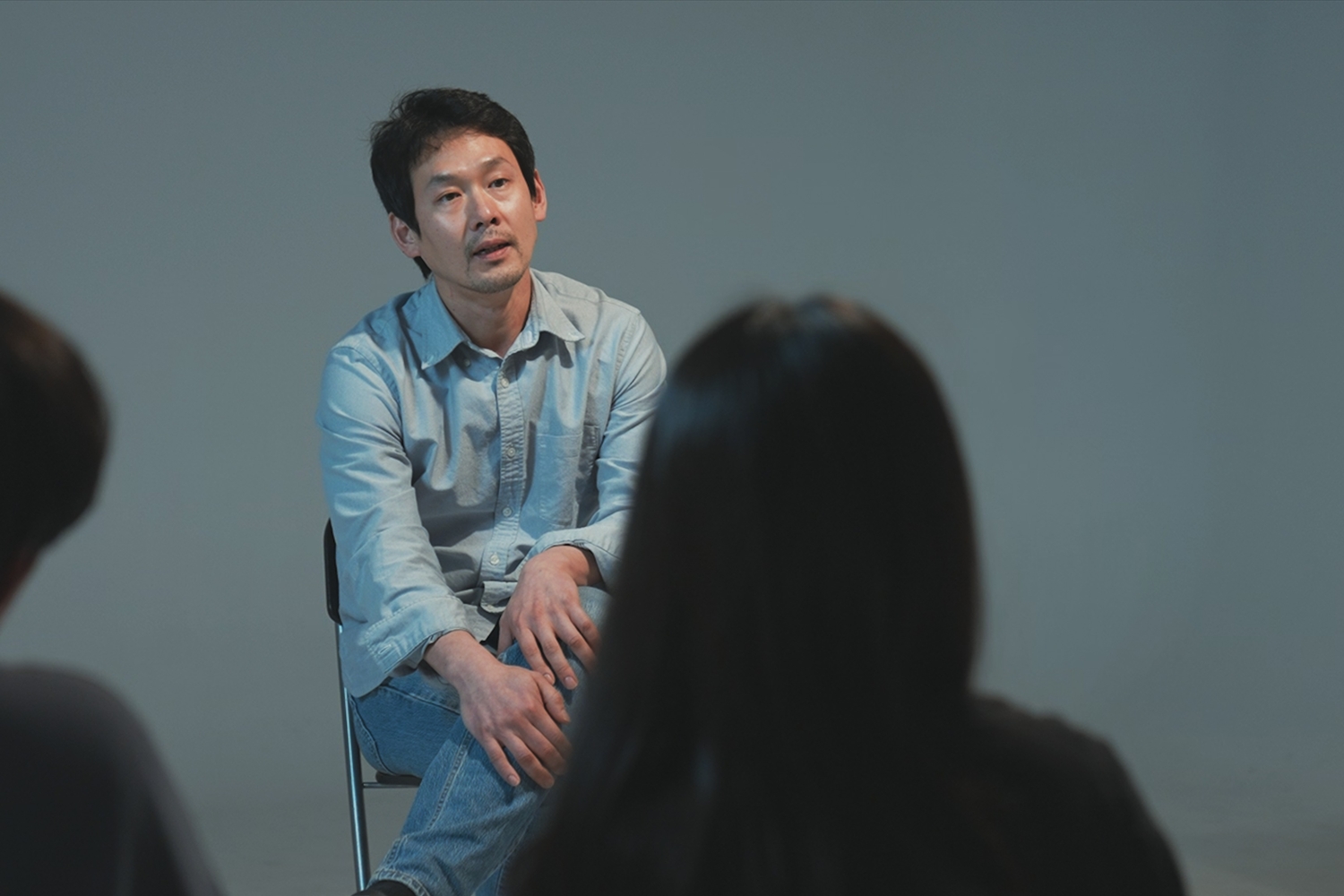 연기 워크숍에 참여하는 일곱 명의 배우들.