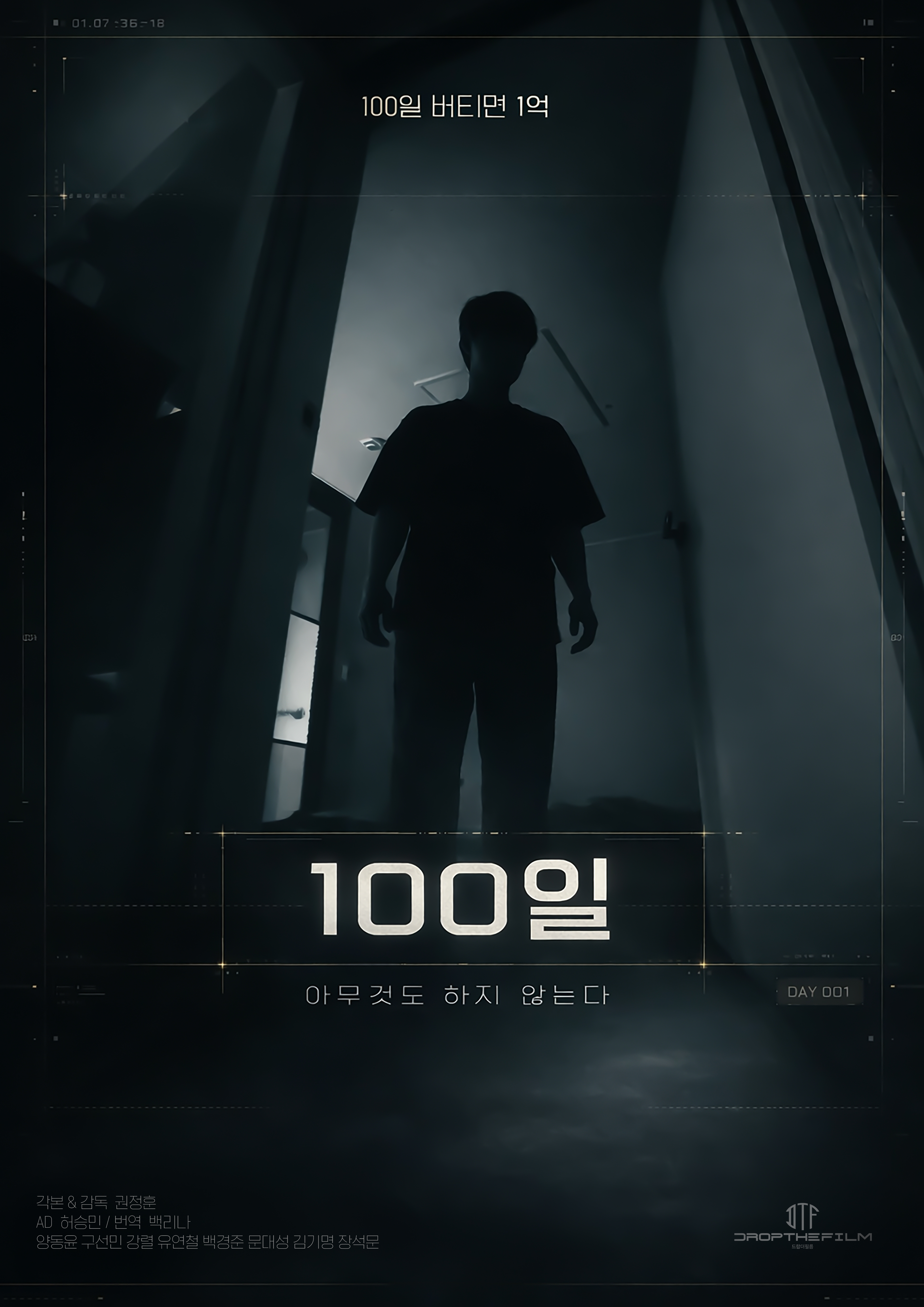 늘 취업에 실패하며 사회와 인간관계 속에서 상처를 받아온 주인공. 어느 날 구인구직 사이트를 살펴보다 해킹인듯한 프로그램이 설치되며 집에서 100일을 버티면 1억원을 받는 게임을 하게 되는데, 오랫동안 취업에 실패하던 주인공은 100일을 버텨 1억을 받을 생각에 호기롭게 도전해 보지만, 막상 집안에서만 생활을 한다는 게 쉽지만은 않다. 시간이 흐를수록 집 안에서 보내는 시간은 단순한 도전이 아니라 그가 살아온 사회와 삶의 방식을 되돌아보게 만드는 계기가 된다. 고립된 공간 속에서 그는 취업, 경쟁, 생산성과 효율이라는 기준 아래에서 자신이 어떤 선택들을 해왔는지 마주하게 되고, 끝없이 선택을 요구하는 사회에 대해 질문을 던지기 시작한다. 이 영화는 개인의 선택이 굉장히 자유로운 것처럼 보이면서도 사실은 정해진 방향 안에서만 허용되고 있다는 걸 성찰하게 되는 한 인물을 통해, 지금 우리가 살아가는 사회의 구조를 차분히 되짚어본다.