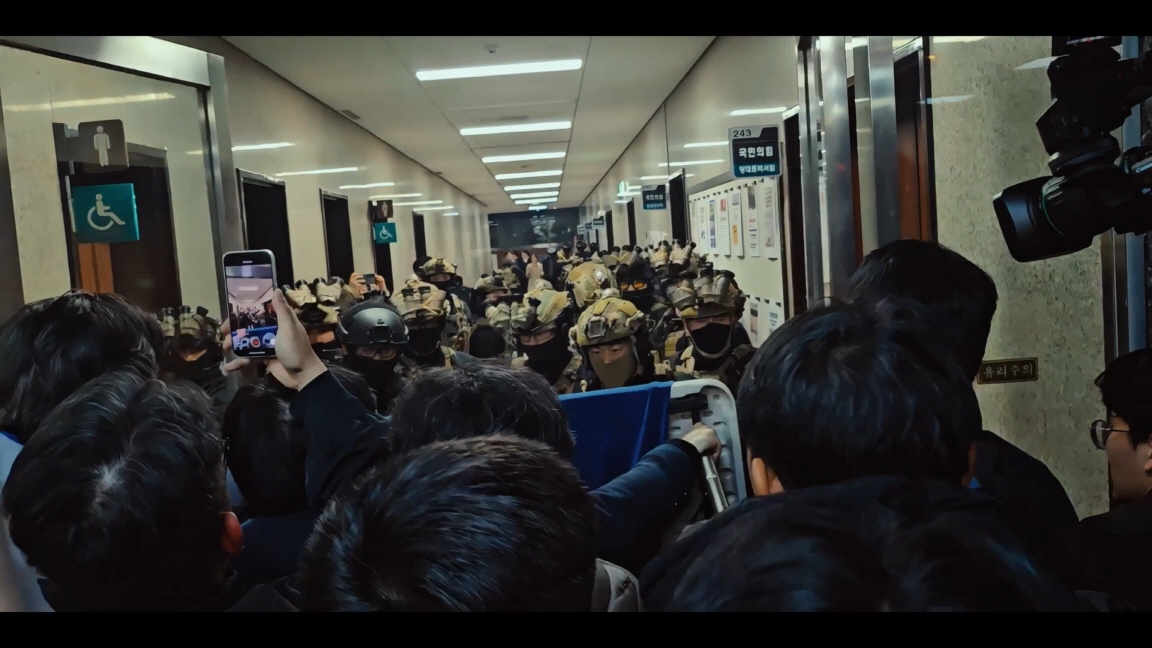 계엄에 반대하여 민주주의를 지키려는 시민과 국회의원들은 국회로 몰려간다.